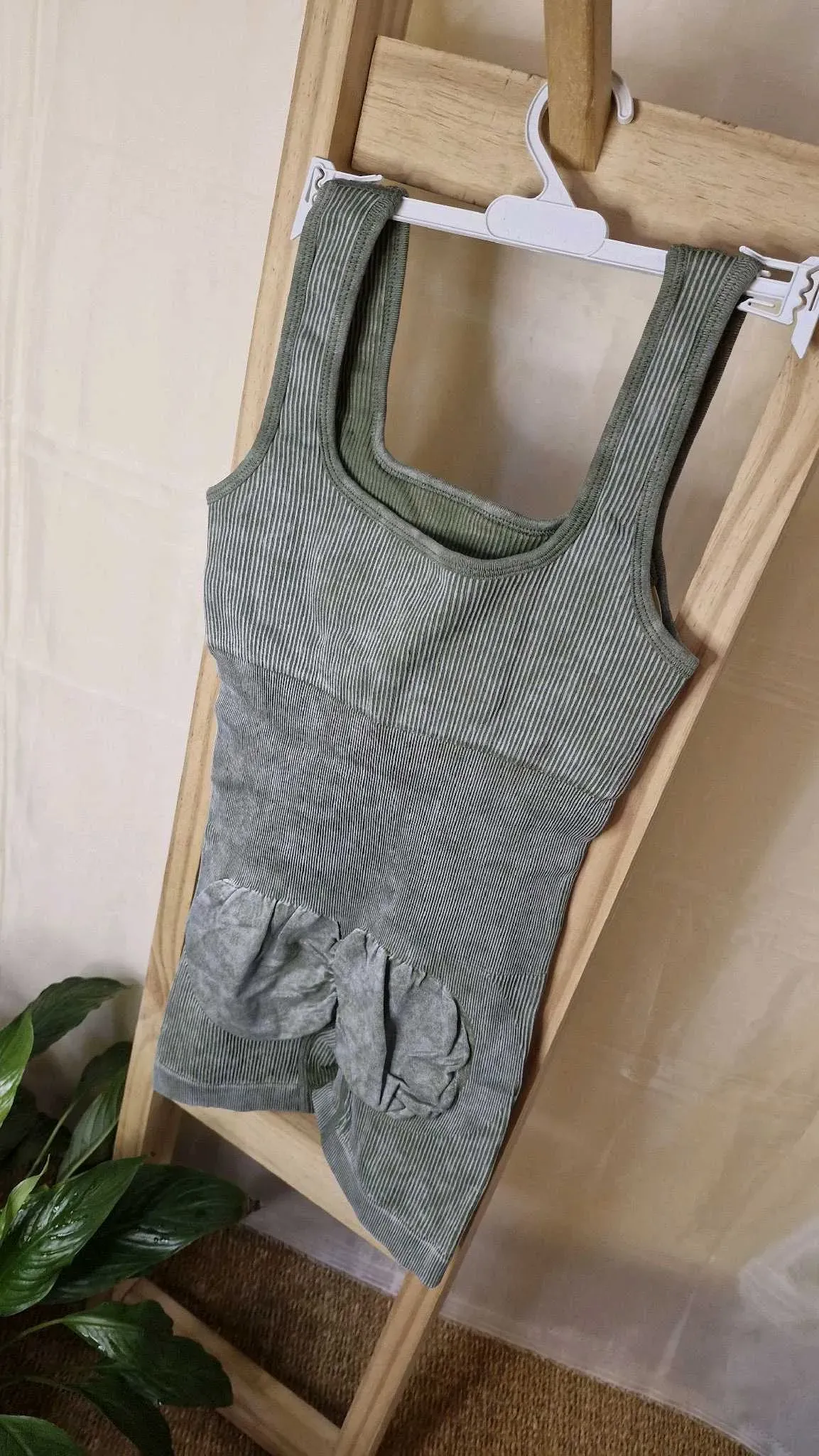 Espalda cruzada con frunce en la parte trasera que hace un efecto push up en la cola, tazas desmontables.